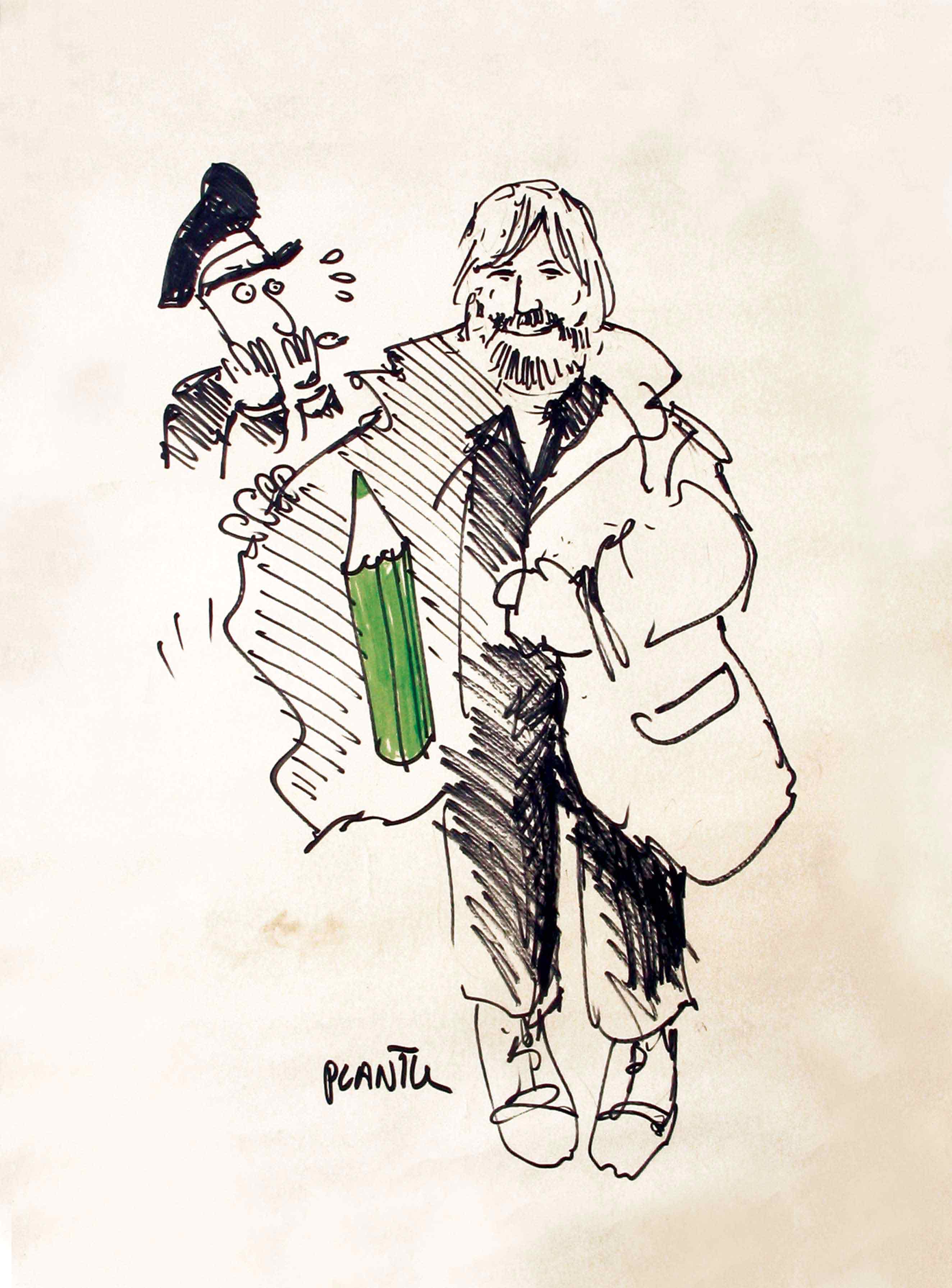 Drawing of the Plantu from the meeting in Paris during the interview for TF1 1983 More: